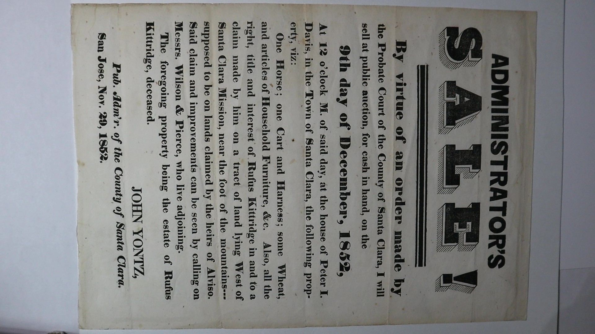 Printed - three-page folded The San Francisco News Letter, No 16 with A Summary of Events from Feb. 20th to March 5th, 1857. Includes vignette advertisement for Mr. Thompson, the Mountain Express Man. Some Info...Thompsons Carson Valley Express was established by John A. Snowshoe Thompson was in operation in 1857 and operated between Genoa, Nevada and Placerville, California. He also carried the overland mails for Chorpenning during the winter months of 1861. Snowshoe died on 15 May, 1876.