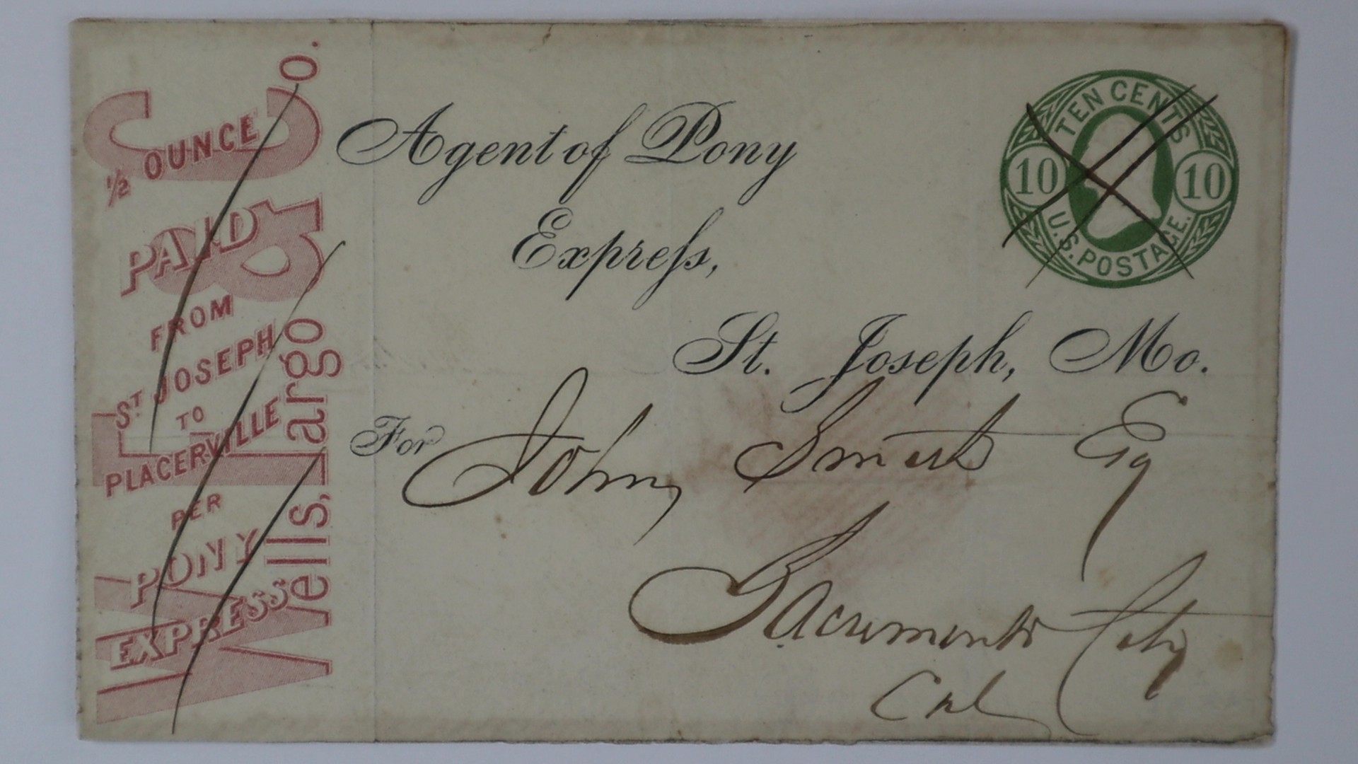 1861 Pony Express East to West Frank St Joseph to Placerville addressed Sacramento