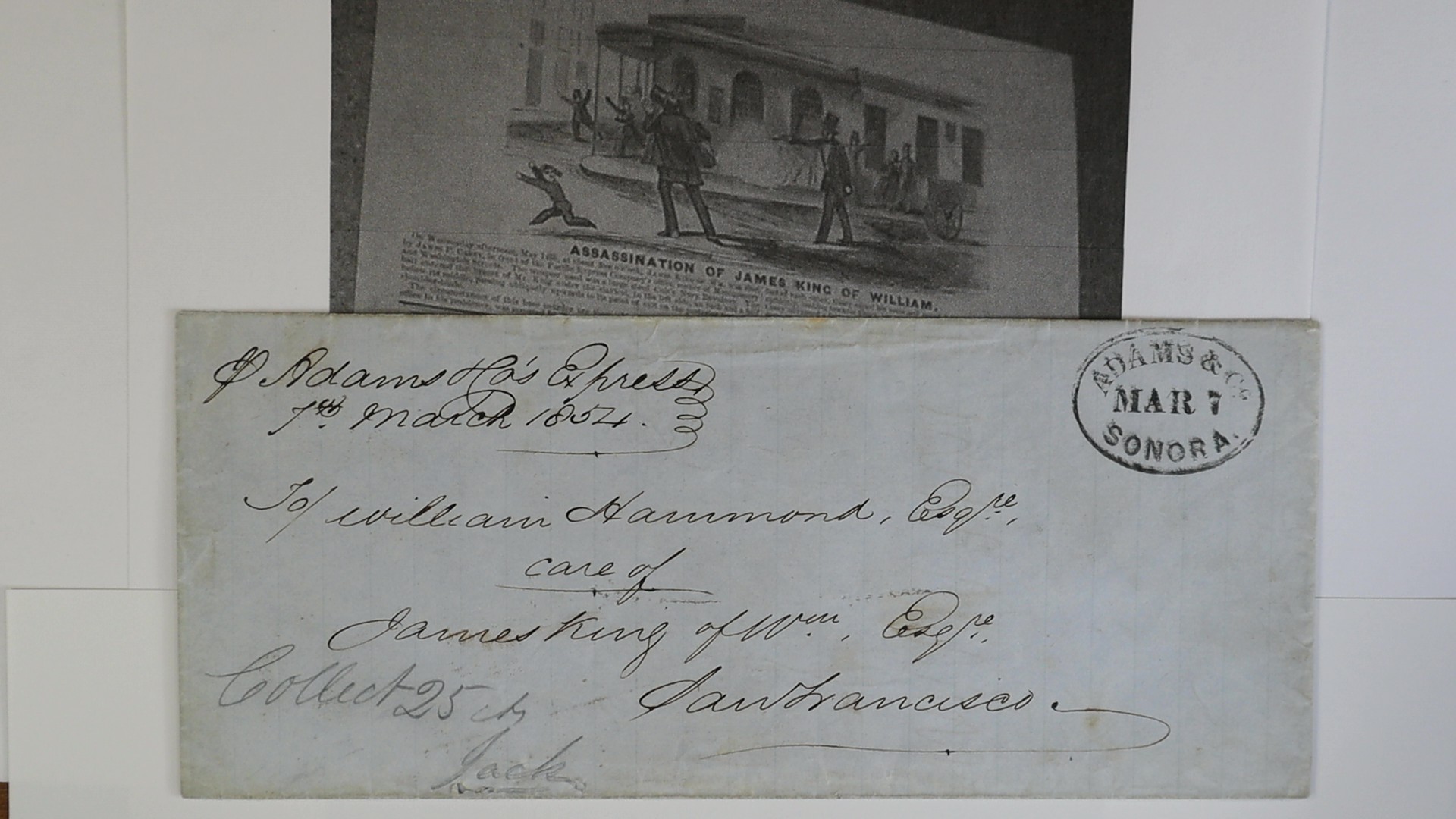 March 7 1854 Pr Adams and Co Express Sonora to Wm Hammond Care James King of William