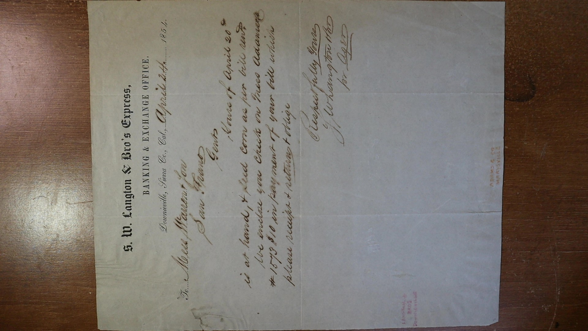 1854 Downieville CA S.W. Langton and Bros Express Banking and Exchange Office Letterhead Letter