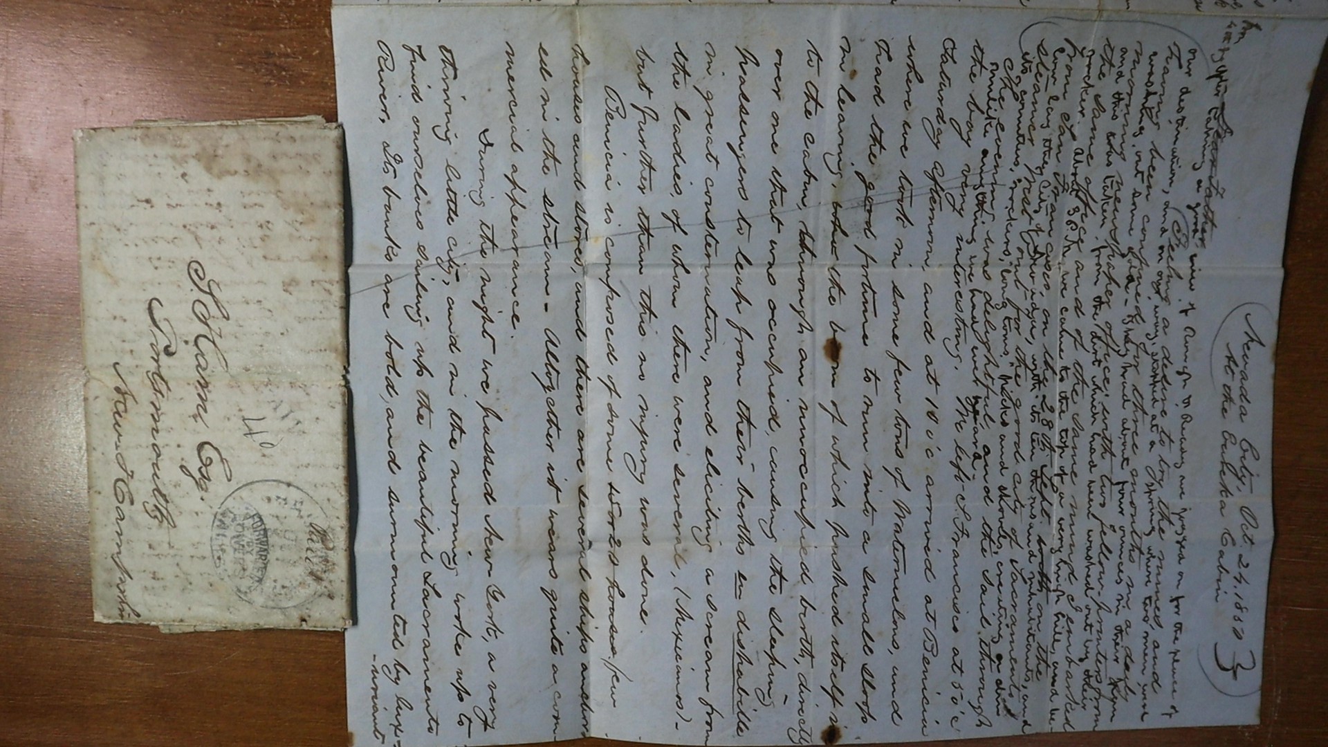 Nevada City Oct 25, 1850 At the Eureka Cabin 6 Page Folded Letter Forwarded by Bowers Express