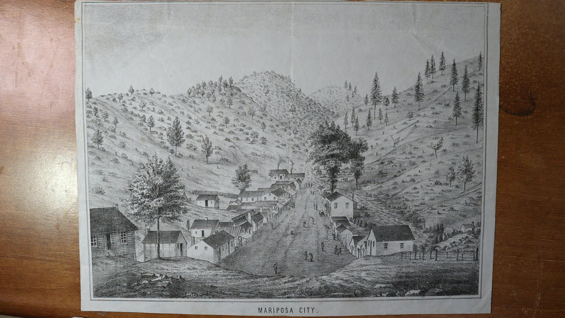and Company (Baird 151) measures 8 X 10 5/8 inches, with printers imprint trimmed away at lower. Per Peters California on Stone pp. 132-138 this imprint being between 1851-1852 a rare engraved illustration of Mariposa City.