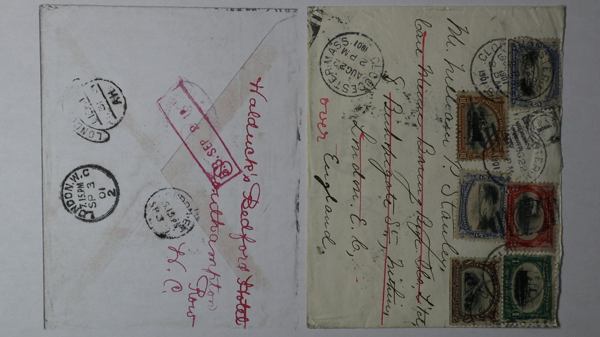 Aug. 22 1901 Gloucester Mass. to London, England and forwarded within London