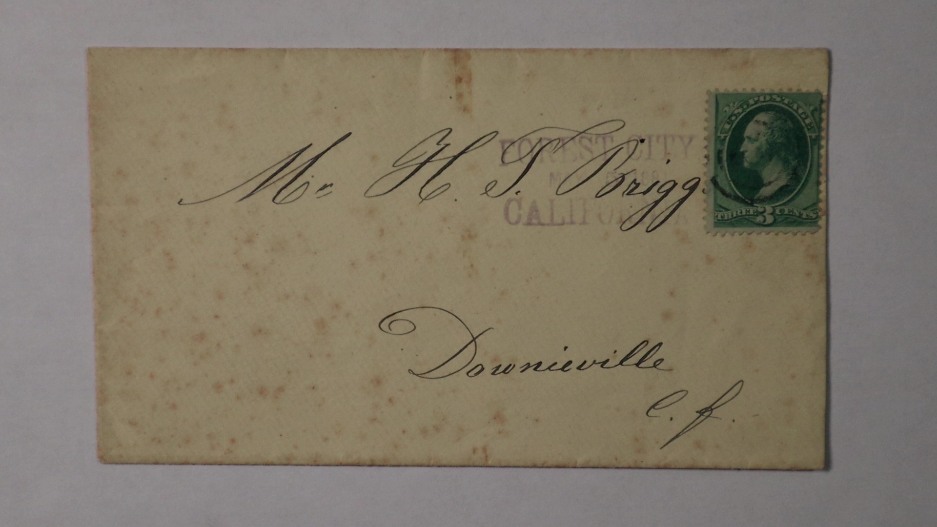 May 5 1881 Forest City California 3 Line Straightline to H.T. Brigg Downieville Cover