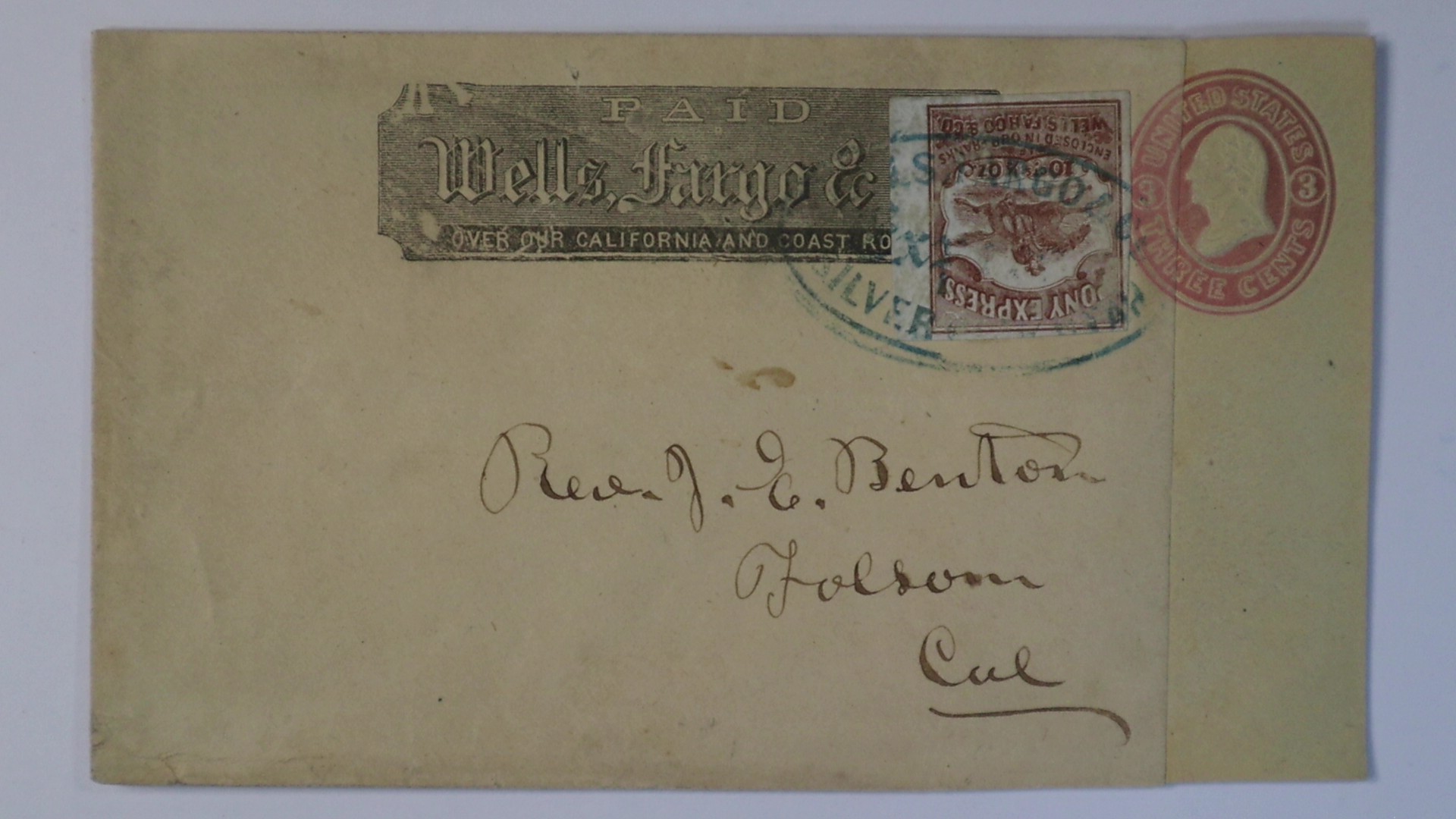 1862 Silver City Utah Wells Fargo Pony Express Nevada to Reverend J.E.Benton Folsom CA Cover